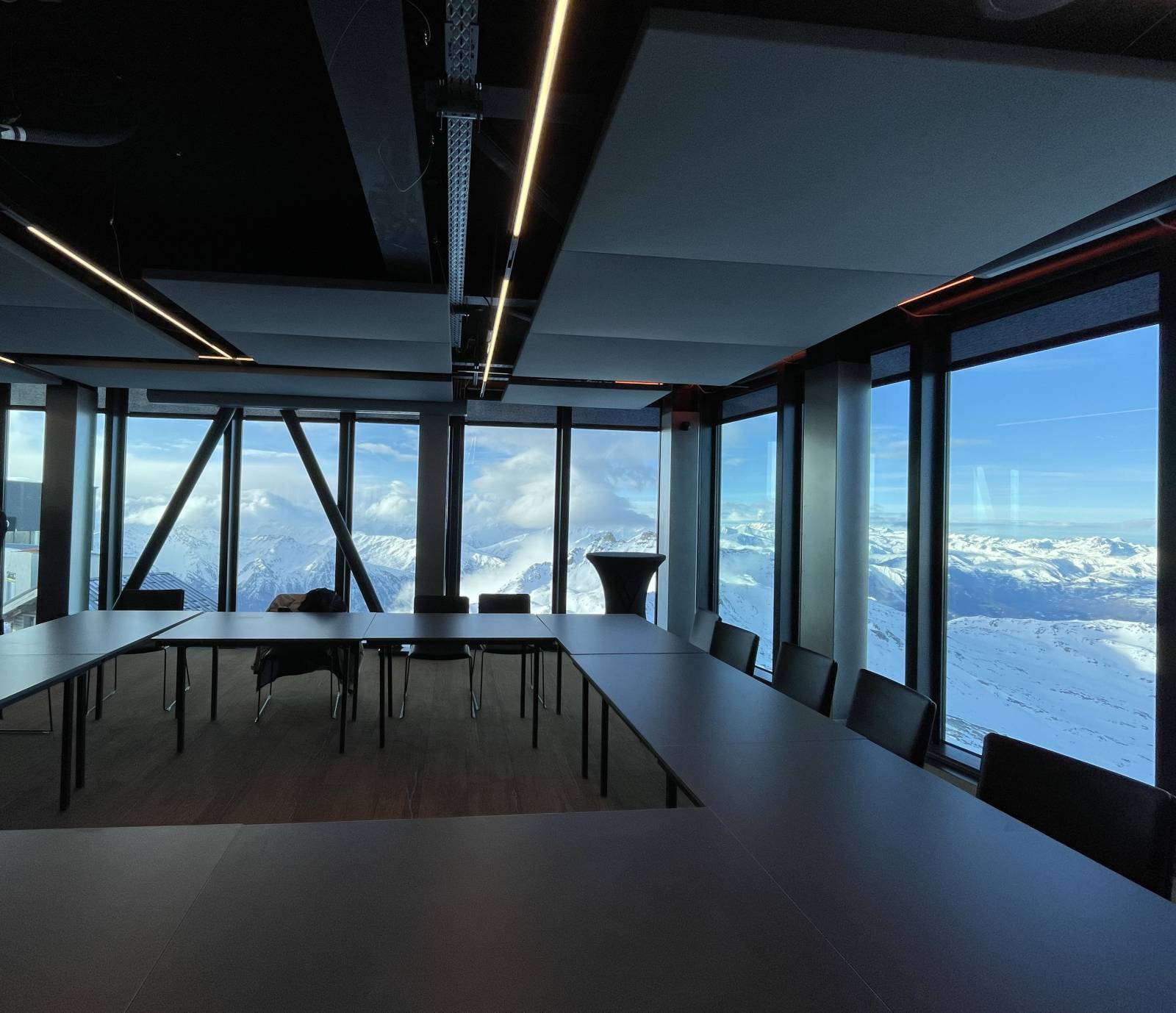 Ce projet ambitieux crée un espace unique de rencontres combinant restauration, musée, salles de séminaire et roof-top, offrant une expérience à 360° en très haute montagne